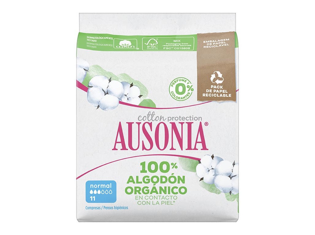 Pensos higiénicos ausonia 100% orgânico normal alas 11un
