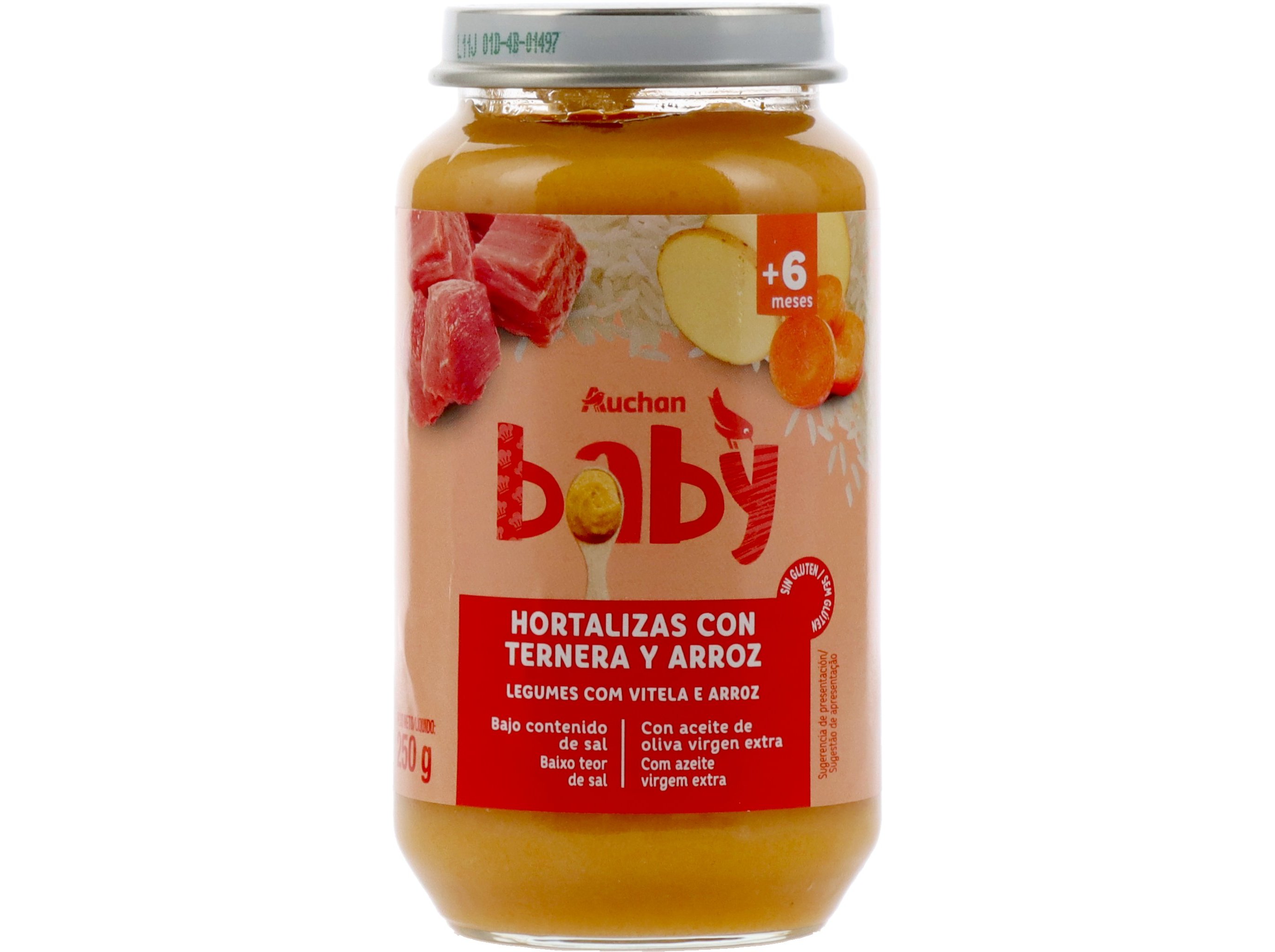 Refeição auchan baby legumes com vitela e arroz sem glúten 250g
