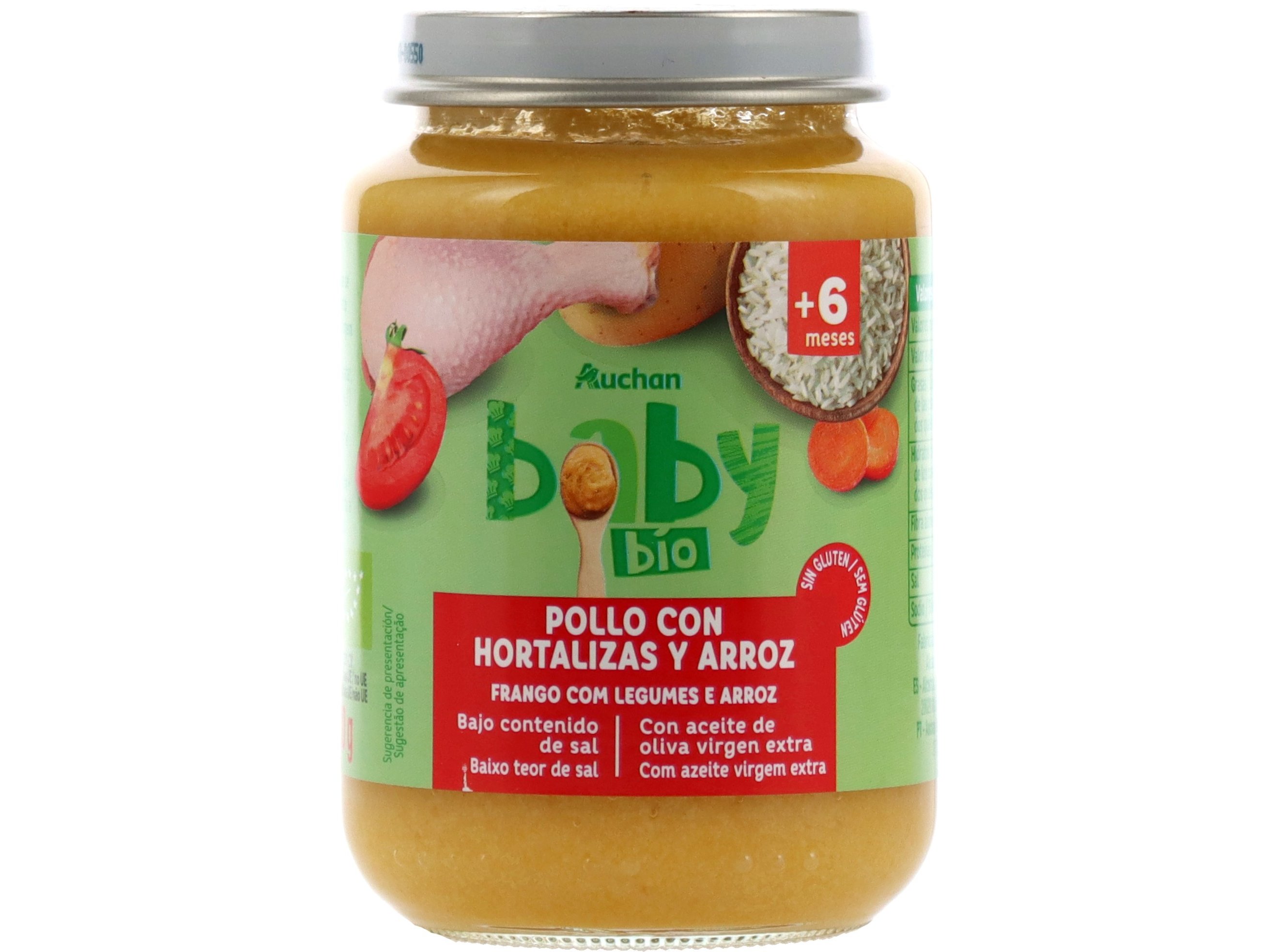 Refeição auchan baby bio frango legumes e arroz sem glúten 200g