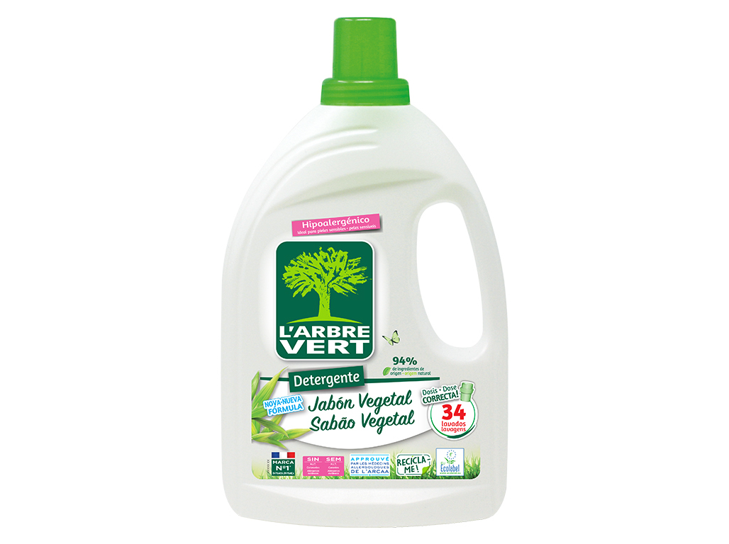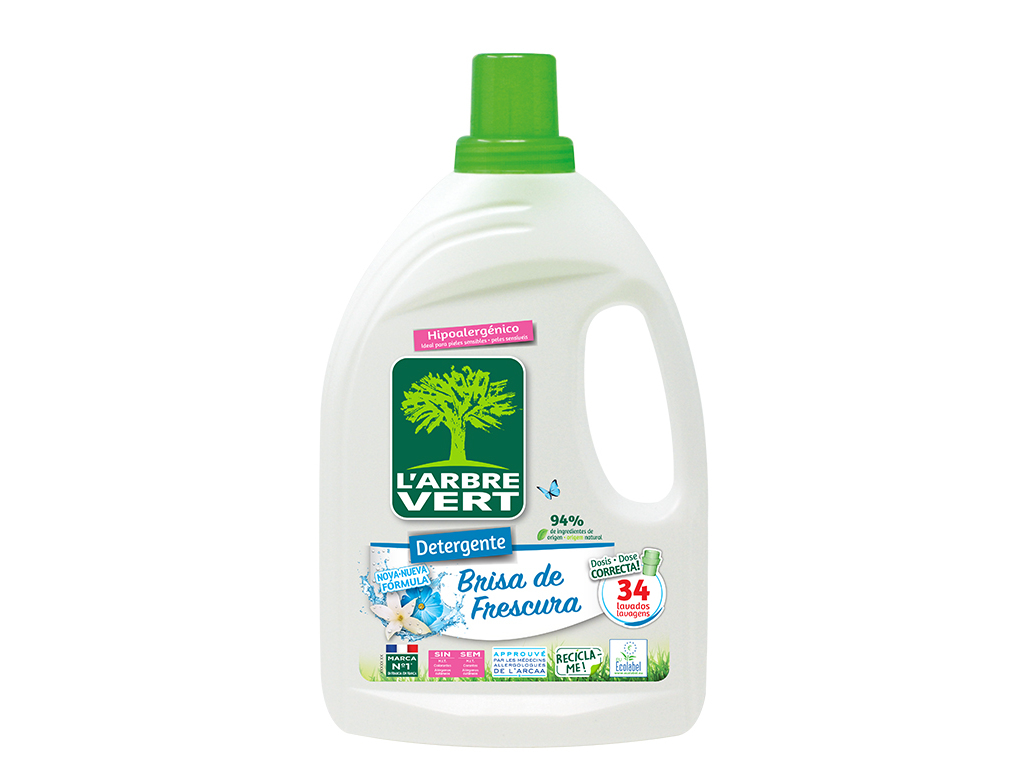 Detergente roupa máquina liquido l'arbre vert peles sensíveis 34d