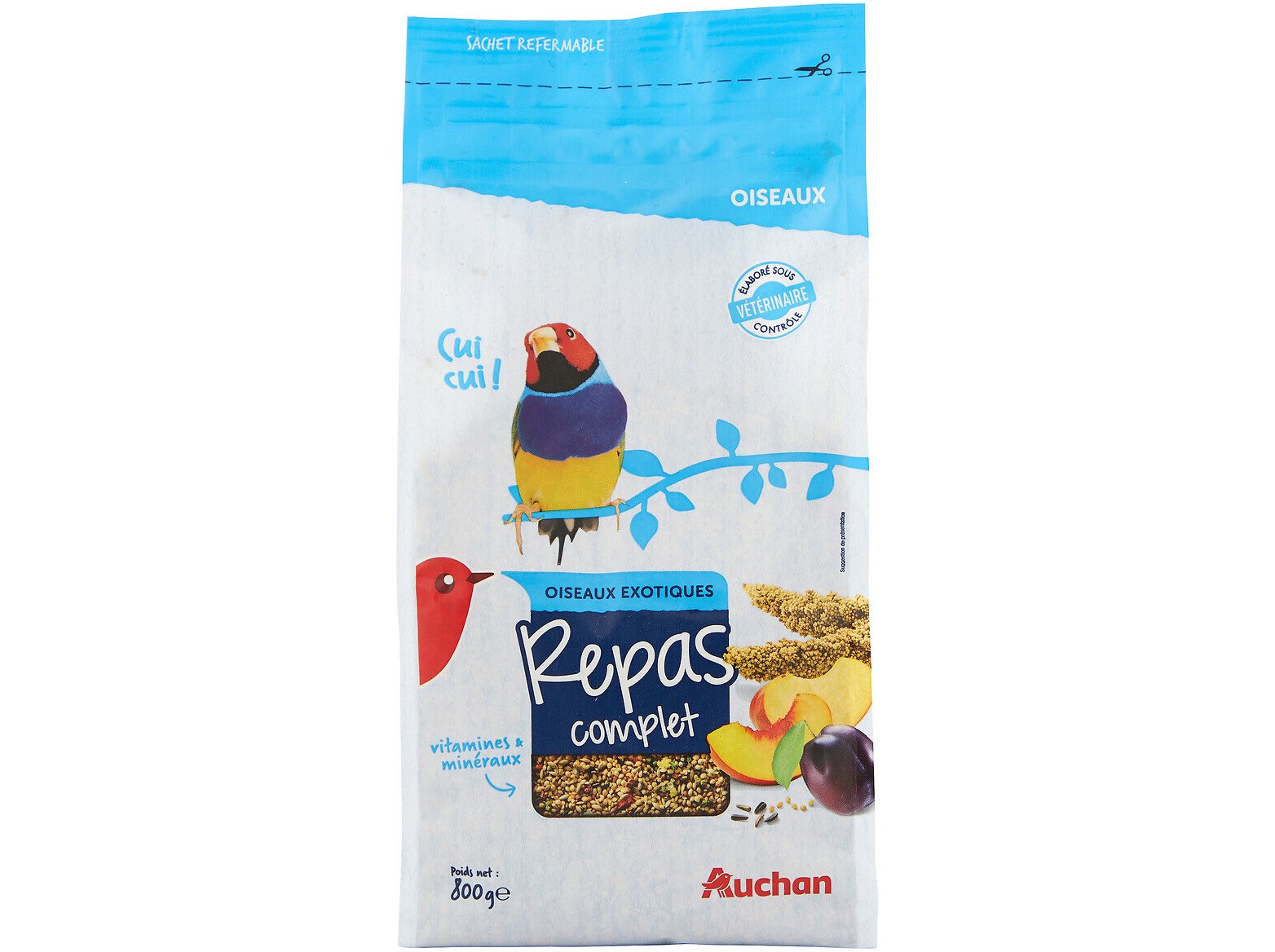 Comida para pássaros exóticos auchan menu completo 800g